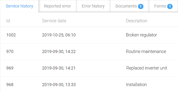 With Service Node, all assets receive a digital service journal. The digital service journal keeps track of all service and maintenance performed at the asset and removes the need to keep a physical service journal.